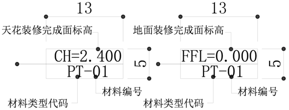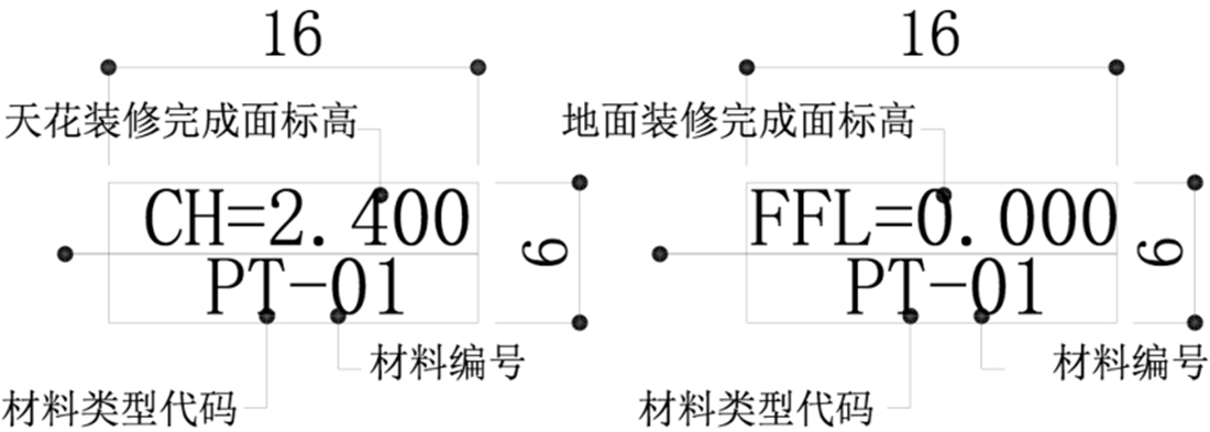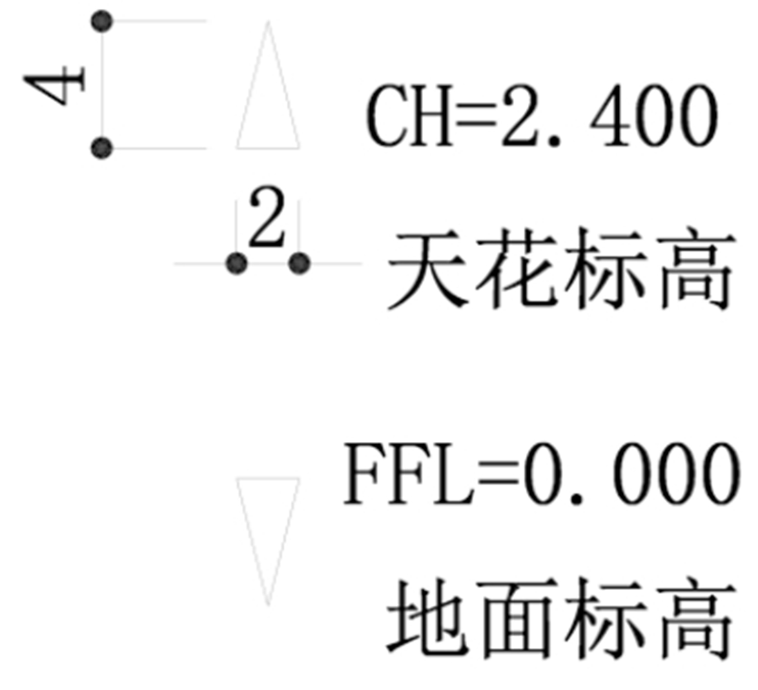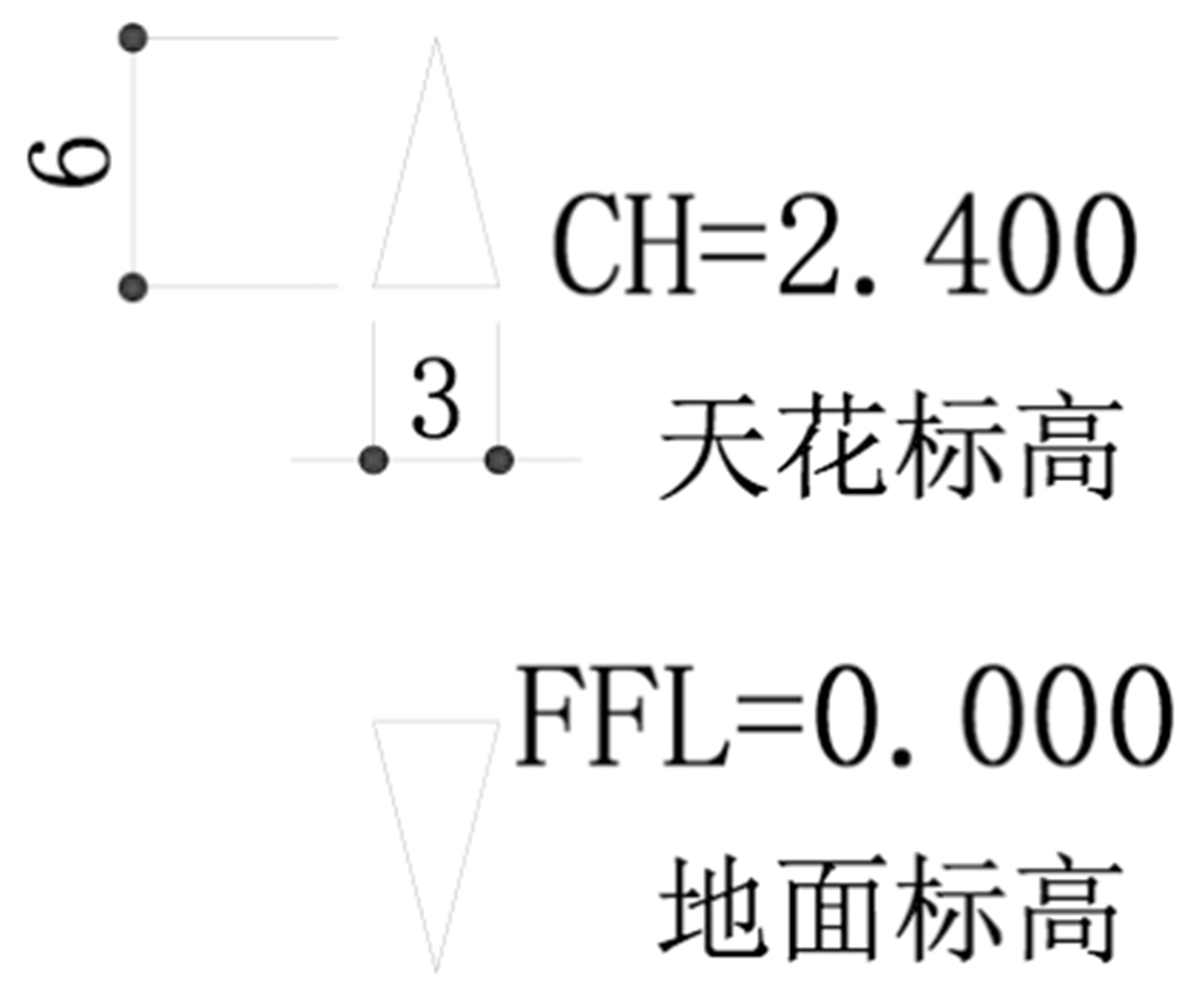 标高标注用于表示天花造型及地面的装修完成面的高度。在不同的幅面中,标高的字体高度也会不同。