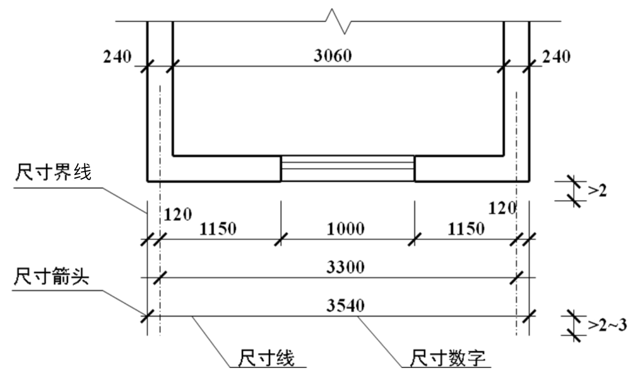 ◆ 尺寸线要与被标注的轮廓线平行,尺寸线从小到大、从里向外标注,尺寸界线要与被标注的轮廓线垂直。