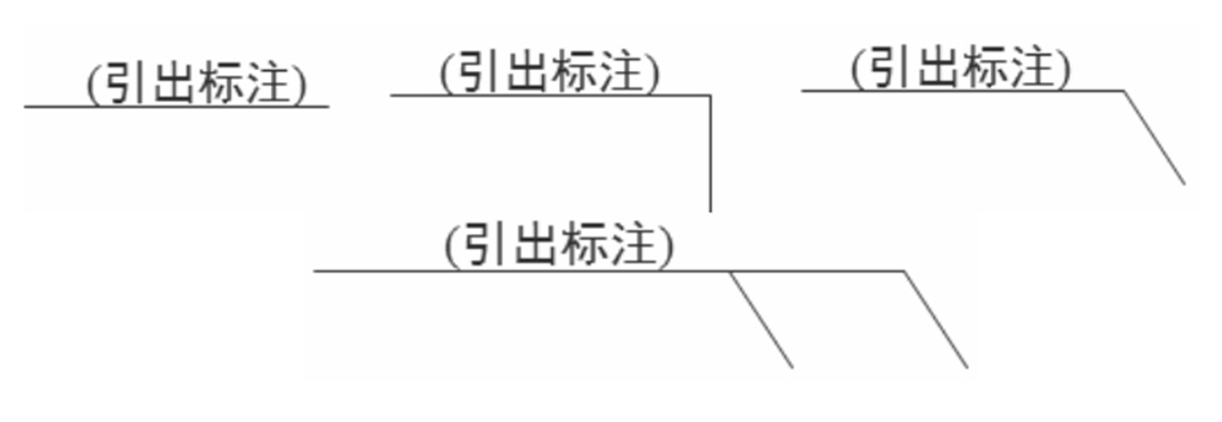 在用文字注释图纸时,引出线应采用细直线,不能用曲线。引出线同时索引相同部分时,各引出线应相互保持平行。常见的几种引出线标注方式如图2-4所示。