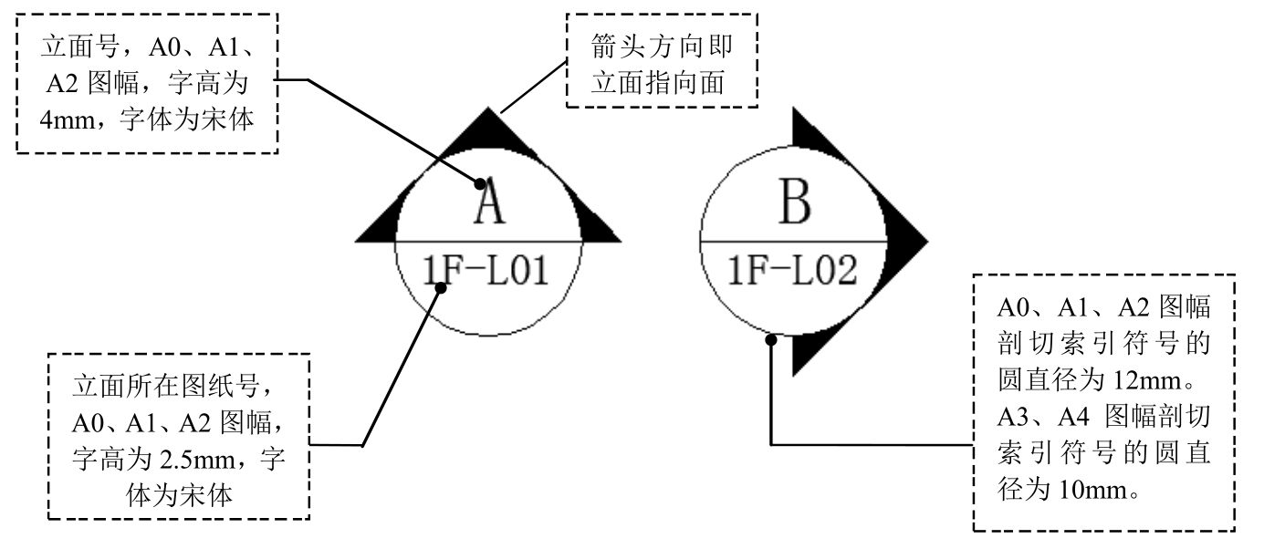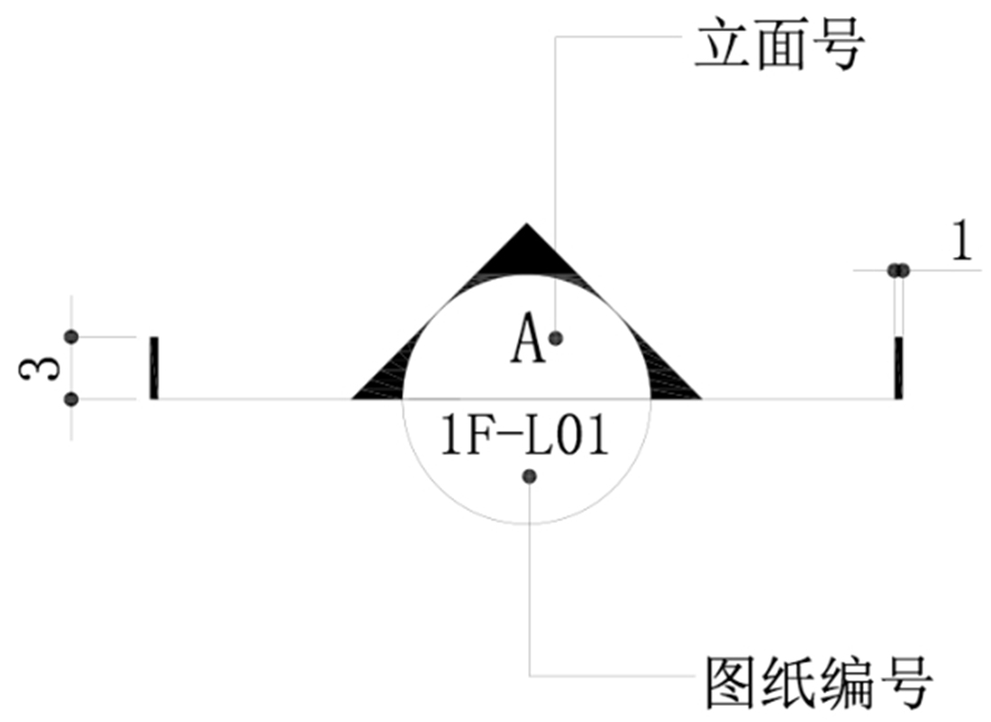 如果一幅图内含多个立面时可采用如图2-14所示的形式;若所引立面在不同的图幅内可采用如图2-15所示的形式。