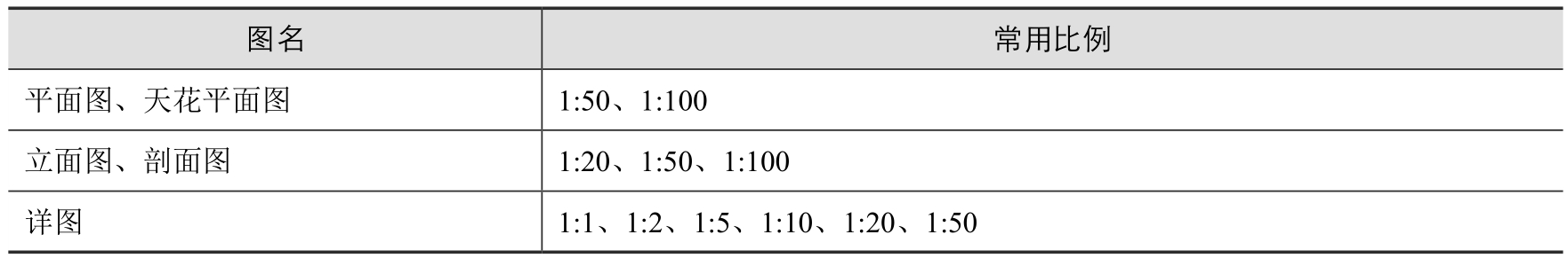 室内设计图中的图形与其实物相应要素的线性尺寸之比称为“比例”。比值为1的比例,即1:1称为“原值比例”,比例大于1的比例称为“放大比例”,比例小于1的比例则称为“缩小比例”。绘制图样时,采用如表2-2所示的国标规定比例。
