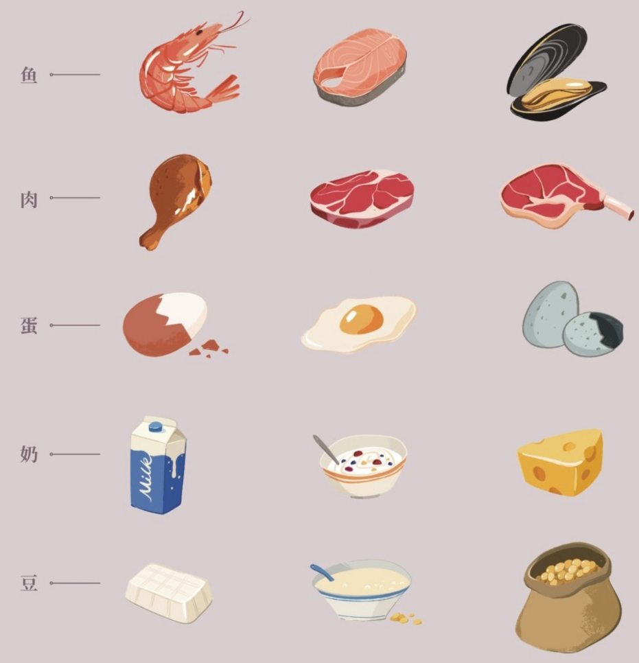 富含完全蛋白质的食物,我们可以称之为高蛋白食物。这些完全蛋白质主要存在于鱼虾水产、禽畜肉、蛋、奶、大豆这五大类食物当中。想要简单记忆,可以默念“鱼、肉、蛋、奶、豆”这五个关键字。