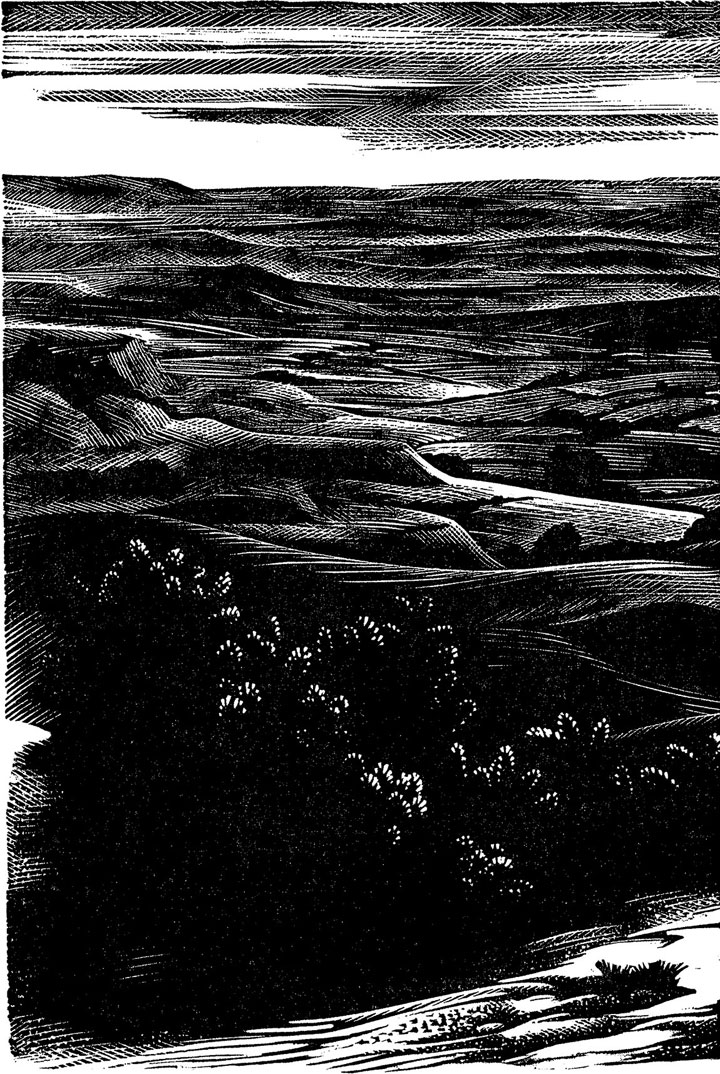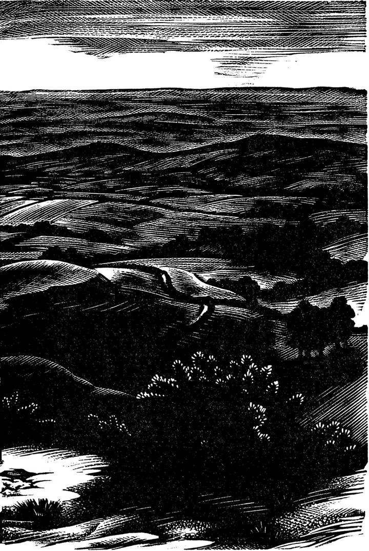 在这一片山峦屏蔽的丰饶的乡村土地上,田地永远不黄,泉水永远不干;它的南边以一道陡峭的白垩质山岭为界,这道山岭包括汉勃顿山、巴尔贝洛、奈脱柯匋、道格伯里、海厄斯托伊和巴布唐这些冈峦。一个从沿海地带来的旅客,向着北方费劲地走过几十英里的石灰质丘陵和麦地之后,不知不觉地登上了这些峻岭之中的一个,看见了跟他刚才所经过的地方迥然不同的一片区域地图般展现在他的眼底,会又惊又喜。在他的身后,山是开阔的,强烈的阳光照耀着如此大片的土地,使整个景色平添一种开豁无垠的特色;路径是白色的,两旁有树枝互相缠绕的低矮树篱,空气是没有颜色的。而在他前面的这个谷地里,世界像是按较小的比例较为细致地建造起来;一块块田地只是一个个围场似的,它们显得如此之小,以致从这个高度看去它们的树篱就像是一张用深绿色的线编织而成的网铺展在浅绿色的草地上。山下的空气是懒洋洋的,而且染上了蔚蓝色,因此连这片被艺术家称为中景的部分也带有那种色彩,而远处的天际则呈现最深的佛青色。耕地不多,面积有限;除开小部分例外,整个景色就是一些在这个大山谷里边的小山和小谷地,上面覆盖着茂盛、显眼的草木。这就是布雷克摩谷。