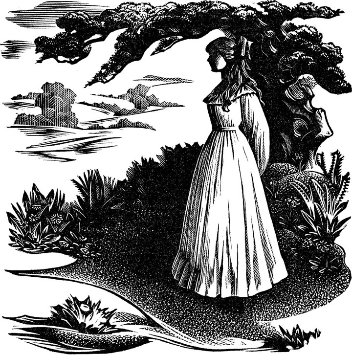他们倚在大道旁的小门上,询问这些全都穿着白色衣服的妇女在草地上跳舞是什么意思。两个哥哥显然只想稍微停留一会儿,但是老三看见一群女孩在没有男伴的情况下跳舞似乎产生了兴趣,因此也就不急于继续往前走。他卸下背包,把它跟手杖一起放在树篱下的坡地上,推开了小门。