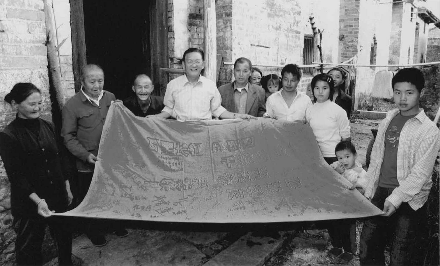 ——追踪考察沙洲村。在于都纪念中央红军出发长征70周年理论研讨会上,《经济日报》副总编辑罗开富讲了他在1984年走长征路时经过汝城沙洲村发生的“半条棉被”的故事,我听了很受感动。没想到半个月后,我竟来到汝城。在10月29日下午到达文明乡时,我就要求去沙洲村实地访问“半条棉被”故事的后人,即使车子不通也要走去。很幸运,我们在沙洲村找到了“半条棉被”故事房东的后代。那是在1934年11月初,红军大部队到达文明乡境内。文明乡位于汝城县西部,距县城近100华里。因此地有“文经武纬、山明水秀”之说,历史上出了些文武官员,故有此名。解放军的上将李涛、朱良才就是本县离此地不远的人。当时在红军总卫生部工作的朱良才,就率部驻扎沙洲村。邓颖超、蔡畅等3位女红军住在沙洲村徐解秀家。邓颖超看到徐家一贫如洗,连床棉被都没有,于是将自己的棉被剪下一半,留给徐解秀家御寒。徐解秀是世纪同龄人,罗开富在1984年采访她时是84岁的老人。前些年已去世。徐解秀有4个儿子,四代人20几口。我们去了徐家,看了当年邓颖超、蔡畅等住的房间、睡的木板床和用的柜子。都是原物,非复制品。徐解秀的孙子说:他们的爷爷为红军当向导走了,奶奶也想当红军,但有1岁的奶孩子,没走了。徐解秀一直珍藏着这半条棉被,目前已成为革命文物由博物馆收藏了。1996年4月,北京电视台《永恒瞬间》摄制组来到该村拍这个故事时,将一床签满了北京大学、中国人民大学两校学生姓名的新棉被送到了徐解秀老人的遗像前。她的孙媳妇将那床学生签名的包单给了我们看。我们既追思当年红军的爱民之情,也为当代大学生要继承和弘扬当年红军的革命精神受到鼓舞。“半条棉被”故事将永远是进行革命传统教育的珍贵的精神资源。