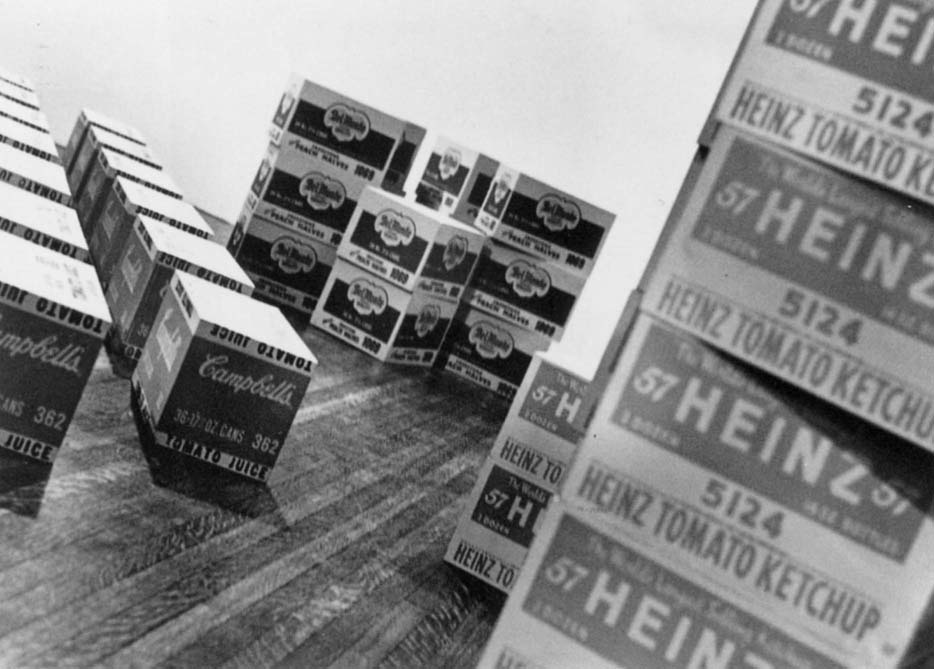 图1.5 安迪·沃霍尔,“金宝汤罐头、德尔蒙和亨氏57个盒子”,纽约斯特博尔画廊装置,1964。