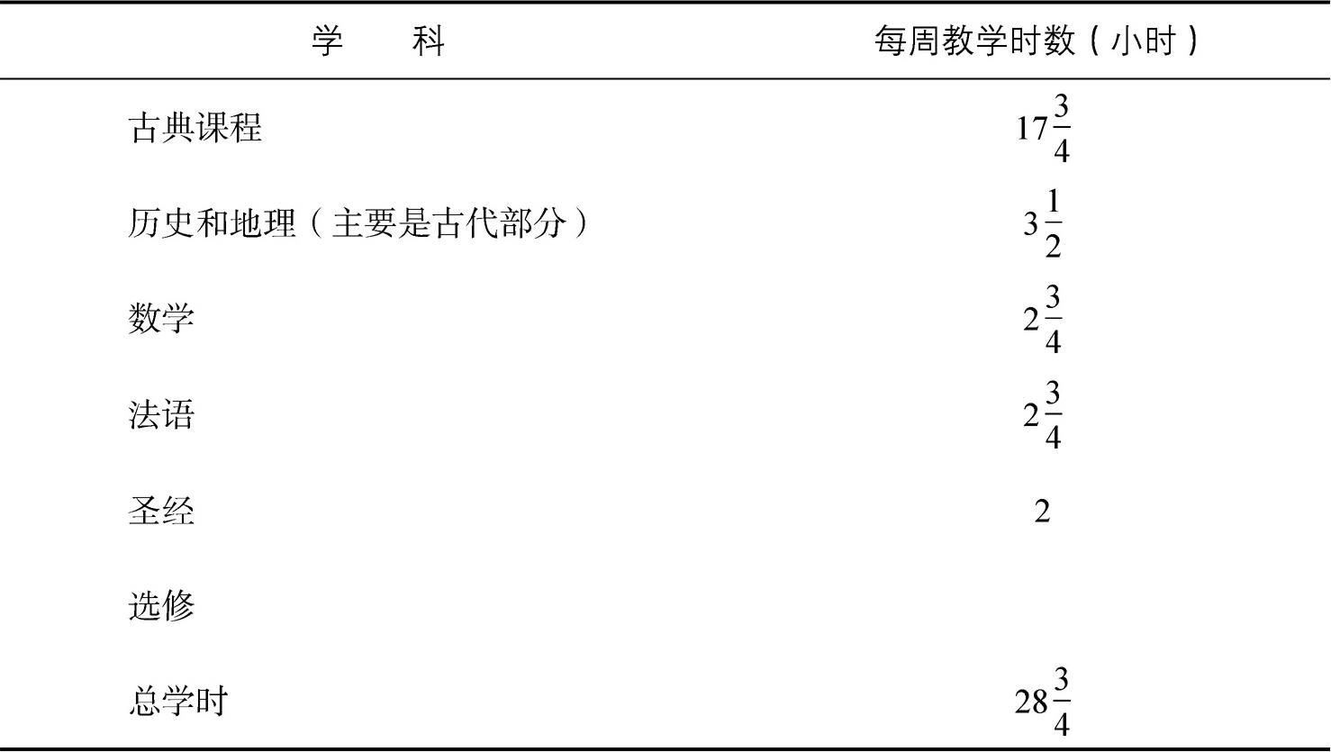 表12-1 1834年拉格比公学每周教学时间分配 [14]