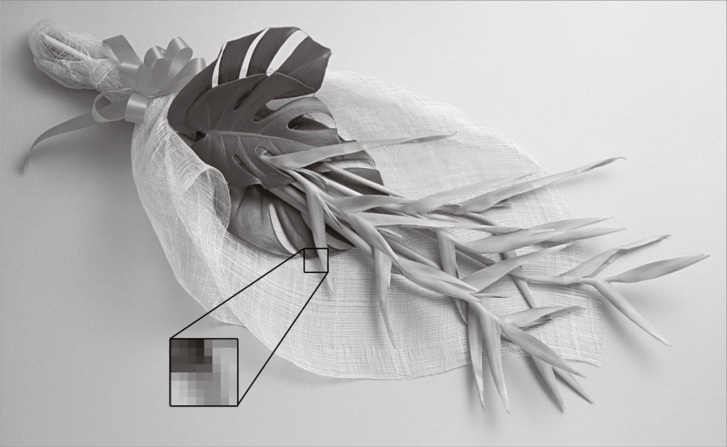 把图像放大数倍,会发现图像是由多个色彩相近的小方格组成的,这些小方格就是构成图像的最小单位,即像素,如图1-1所示。