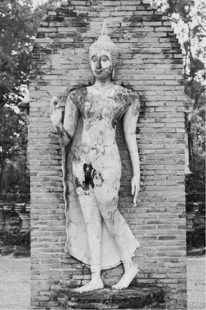 素可泰时期的佛像造型达到了佛教艺术的高峰。其代表佛像塑造的是一位姗姗而行的佛,可以跟世界上任何国家、任何时期的佛陀造像相媲美。此佛的面部低眉善目,手臂修长柔美如象鼻,步履轻盈,体态潇洒,被视为素可泰佛像的经典。