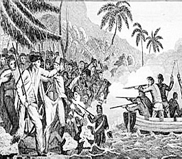 而按照当地人的一种说法,作为报复,土著在库克船长再次登岛时,便把他杀了。
