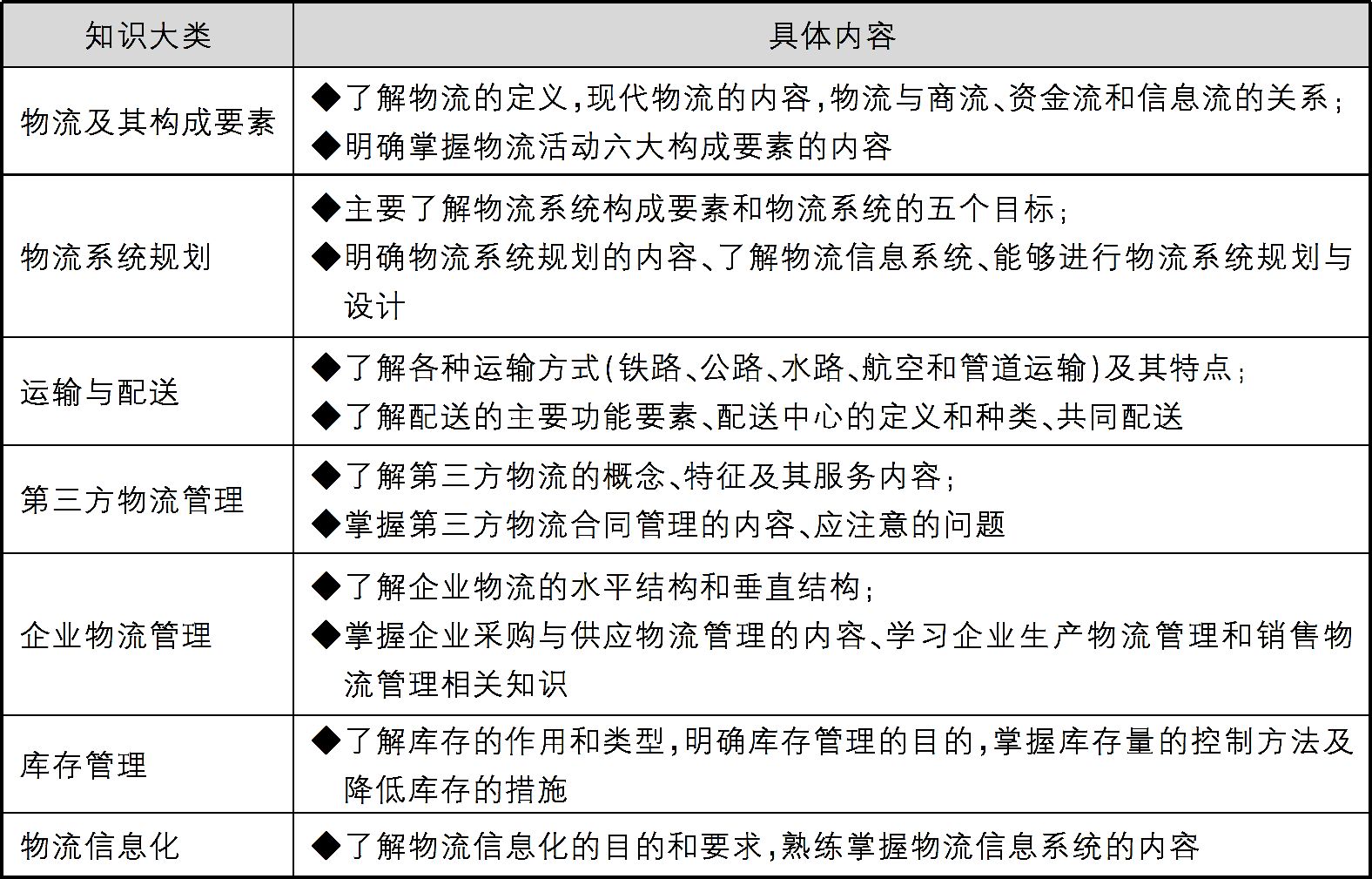 优秀的采购员需掌握的物流基础知识如表1-5所示。