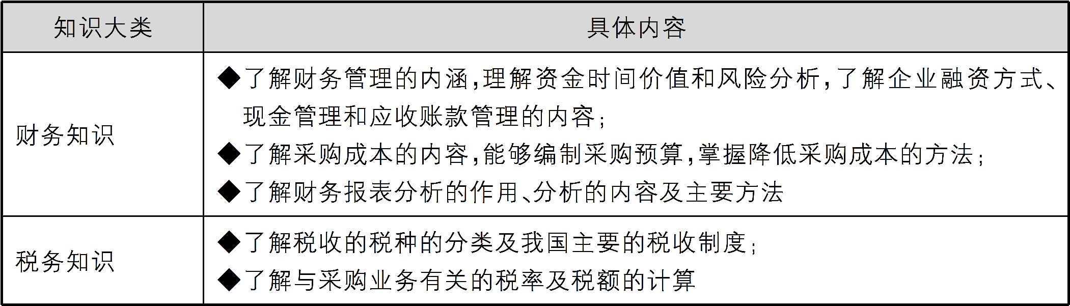 表1-8 优秀的采购员需掌握的工商税务财务知识