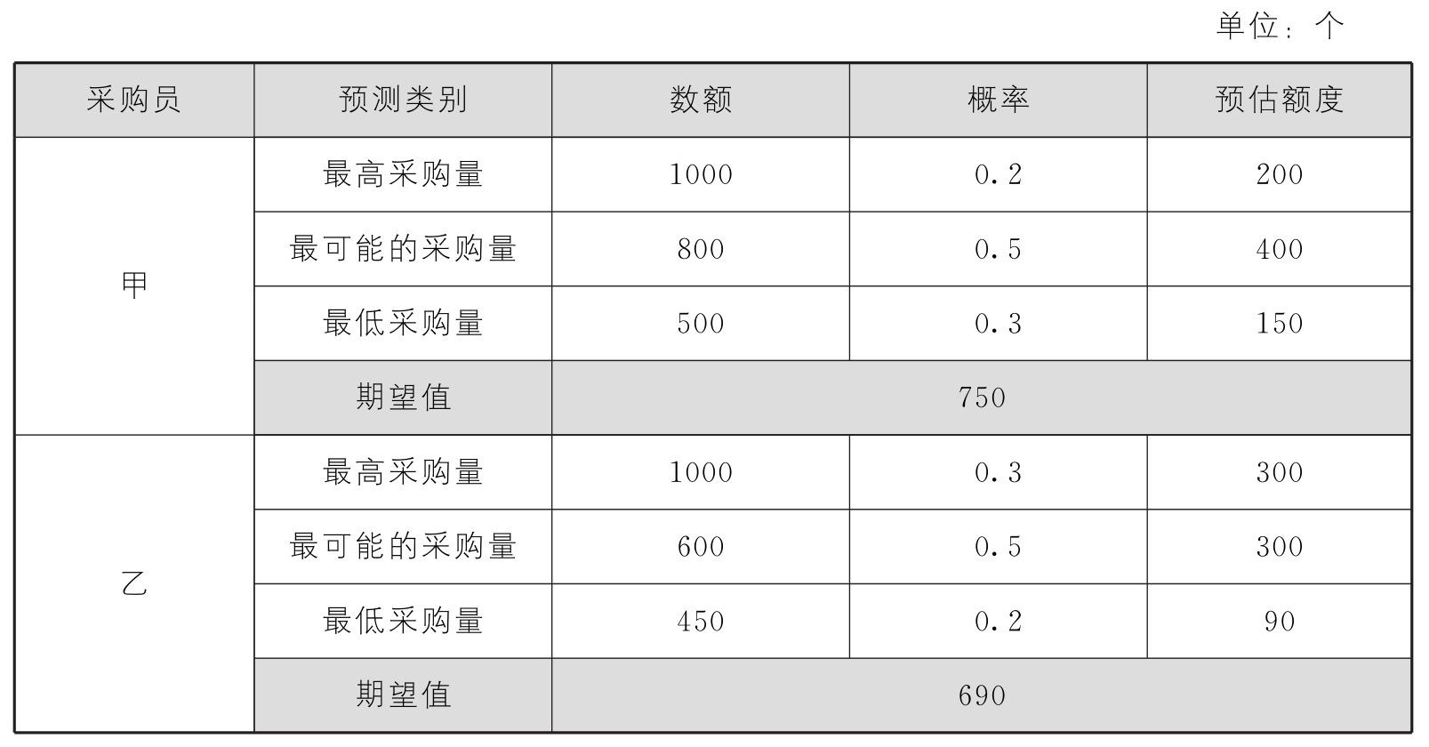 如果企业对这两位采购人员意见的信赖程度是一样的,则平均预测值为