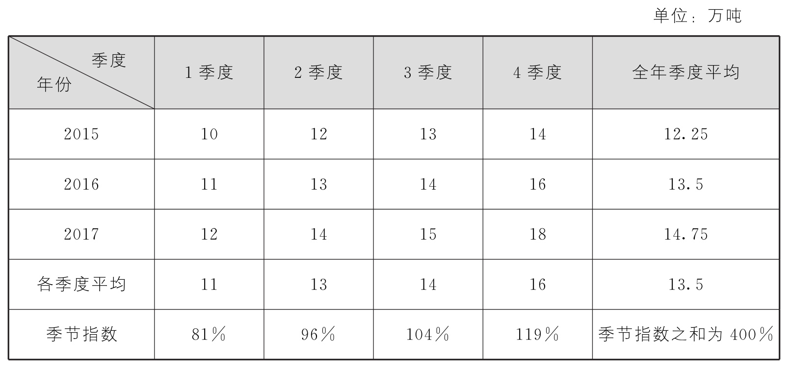 某公司2015~2017年的部分采购数据见表1-4,预测2018年各季度的采购量。