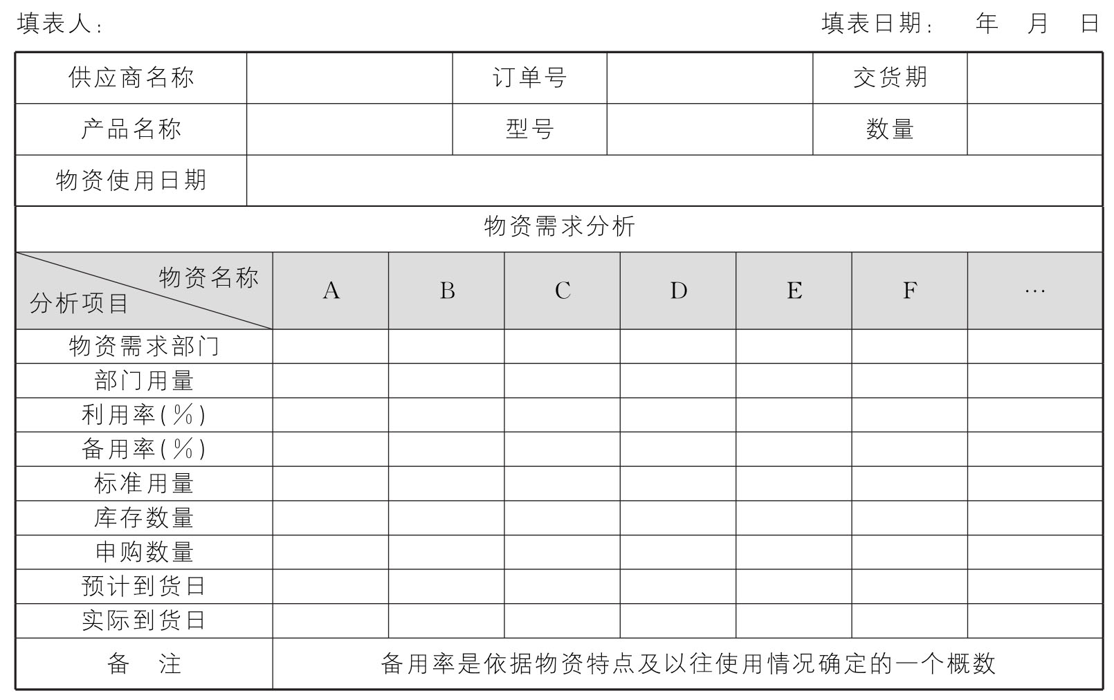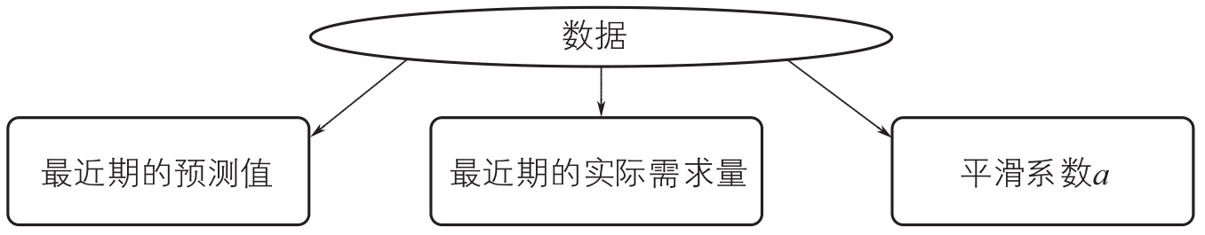 在运用指数平滑法进行采购需求预测时,会用到3个数据,所需的数据见图1-5。