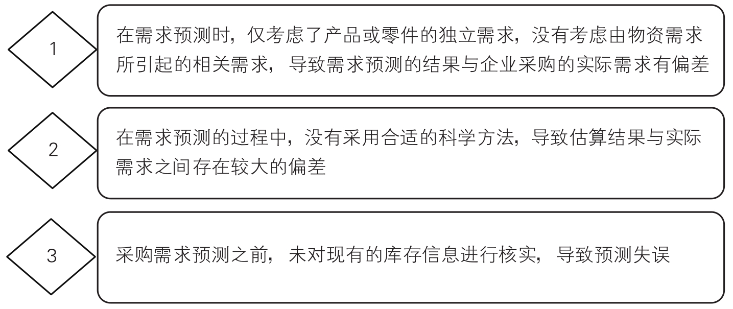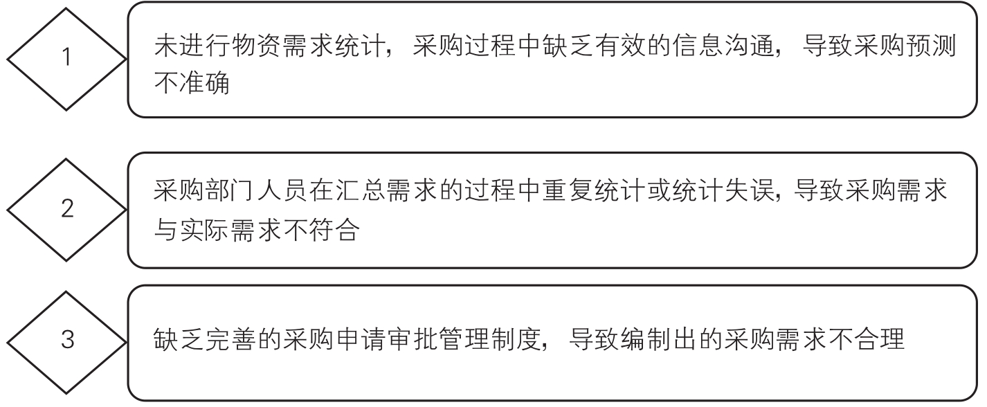 采购需求预测即对采购物资需要的产品数量、质量、价格等信息进行估计。采购需求预测的风险一般表现在3个方面,如图1-2所示。