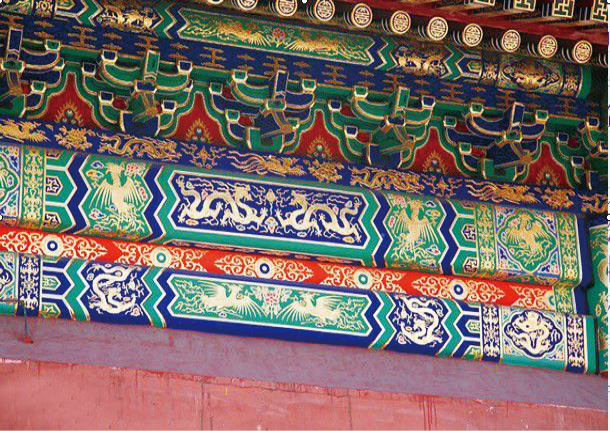 古建彩画中,宋式彩画和清式彩画都是比较成熟的,其中宋式彩画主要分为五彩遍装、碾玉装、青绿叠晕棱间装、解绿装饰、丹粉刷饰、杂间装六种,五彩遍装是等级最高的。清式彩画大体分为和玺彩画、旋子彩画和苏式彩画三种,其中和玺彩画的等级最高,主要用于宫殿、寺庙、园林等正殿及重要门殿的梁枋上,以龙凤为装饰题材,青、绿色调为主,饰以贴金。