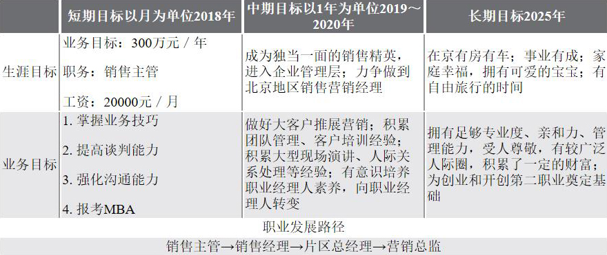 表3-1 某销售人员的职业目标