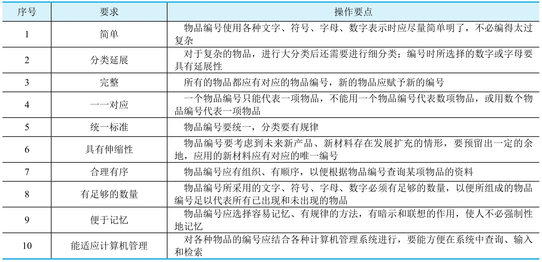 企业在组织仓管员进行物品编号时,一定要注意表2-3所列的几点要求。