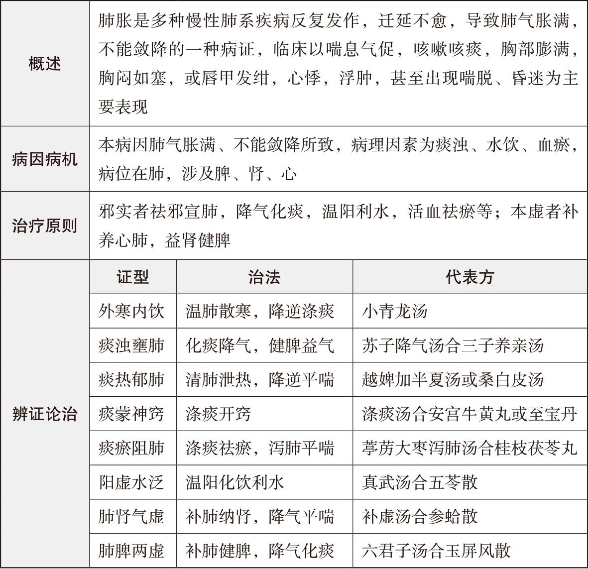 1.肺、心功能代偿期 采用中西医结合的综合治疗措施,延缓基础支气管、肺疾病的进展,增强免疫功,预防感染,减少或避免急性加重,加强康复锻炼和营养,必要时可行长期家庭氧疗或家庭无创呼吸机治疗等,以改善患者的生活质量。