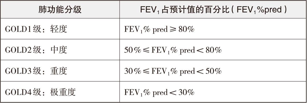 表1-5 慢阻肺气流受限严重程度肺功能分级