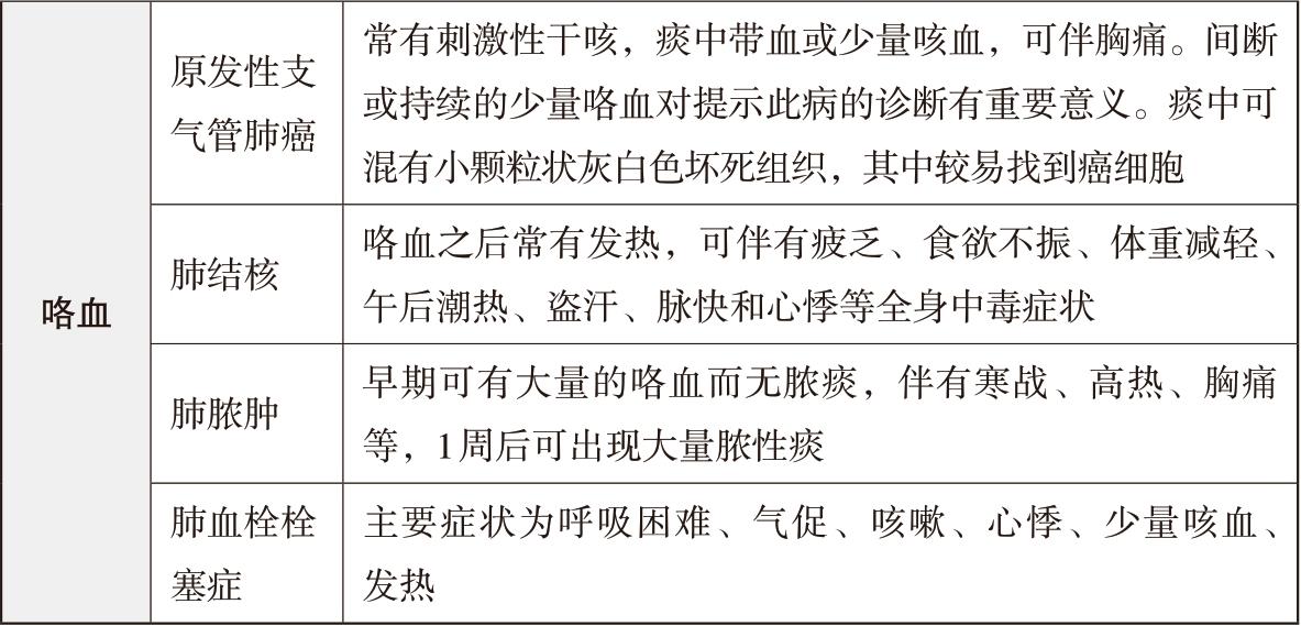 (1)呼吸系统症状:咳嗽、咳痰、咯血、胸痛。