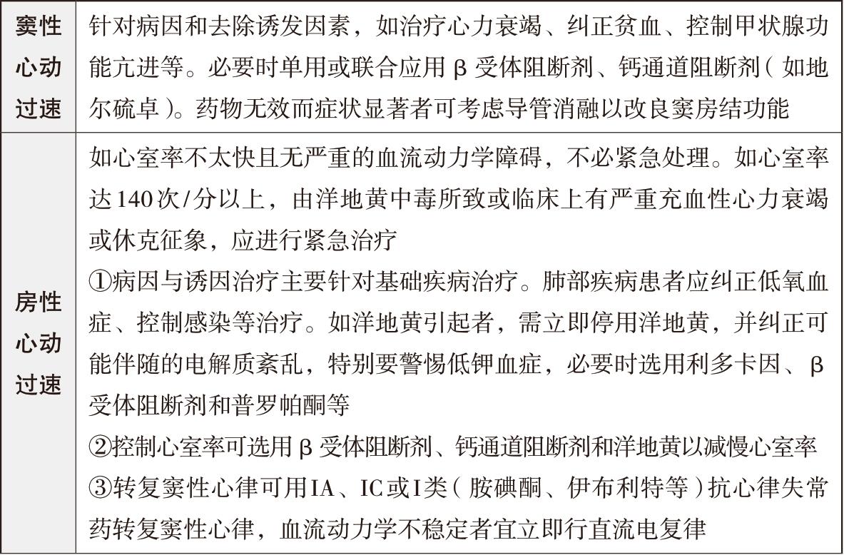 1.一般治疗 患者应立即卧床休息消除紧张情绪和顾虑,保持环境安静,可以应用小剂量的镇静剂和抗焦虑药物。对于有发绀、呼吸困难或其他高危表现患者,给予吸氧,监测血氧饱和度,维持SaO 2 >90%。同时积极处理相关疾病,如感染、发热、甲状腺功能亢进、贫血、低血压、心力衰竭、低氧血症、肺部感染、快速型心律失常和严重的缓慢型心律失常。