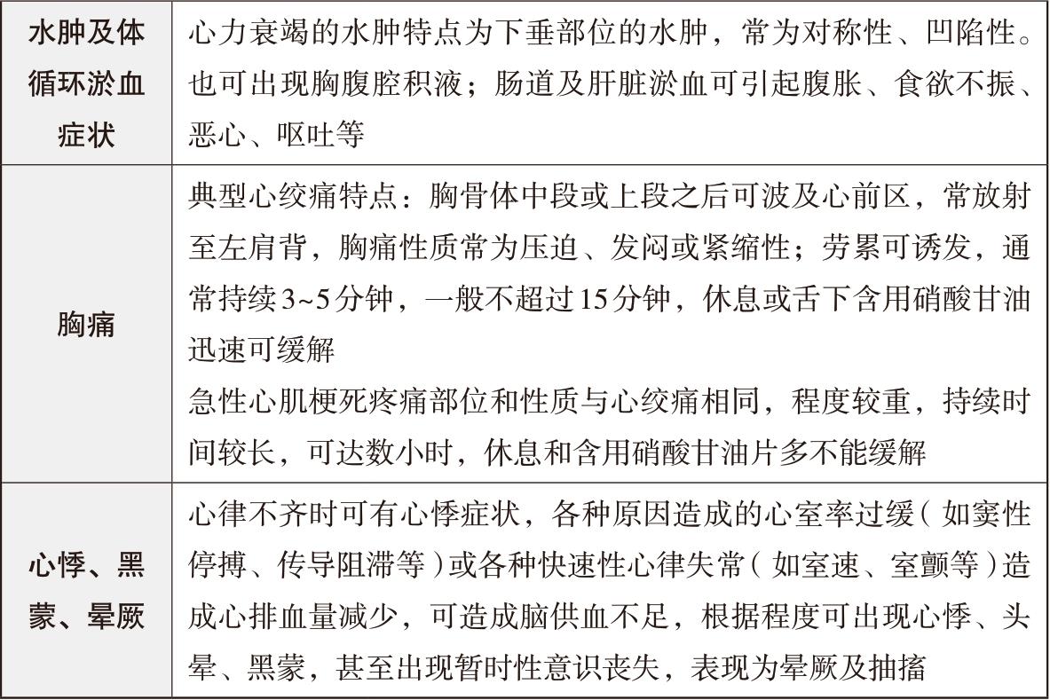 1.左心衰竭的症状和体征 ①呼吸困难是左心衰竭最主要的症状,可表现为劳力性呼吸困难、端坐呼吸、阵发性夜间呼吸困难等多种形式。②咳嗽、咳痰、咯血,粉红色泡沫痰。③运动耐力下降、乏力、头晕、心慌等灌注不足的表现。④查体除原有的心脏病体征外,还可发现左心室增大、脉搏强弱交替,听诊可闻及肺部啰音。
