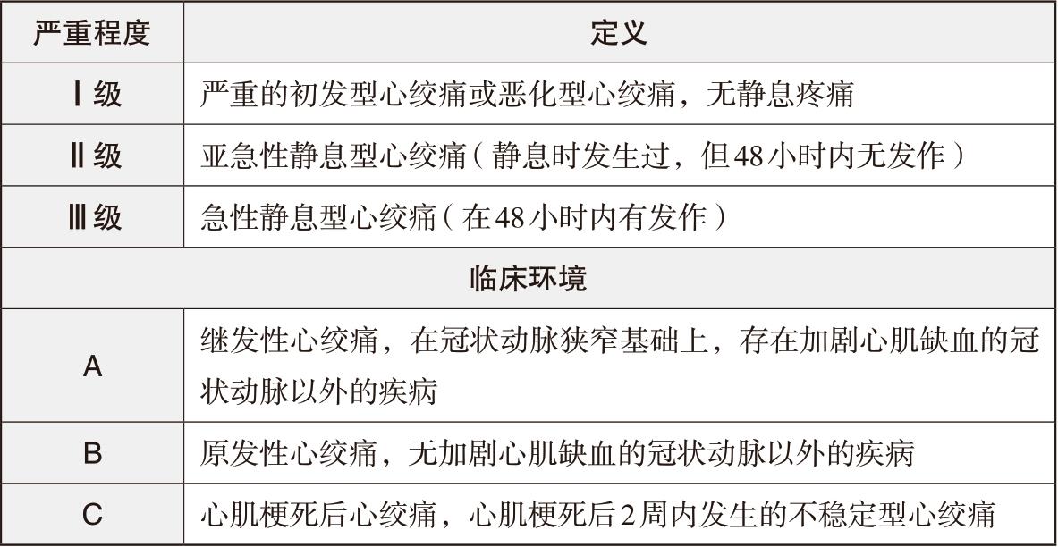 表2-13 不稳定型心绞痛严重程度分级(Braunwald分级)