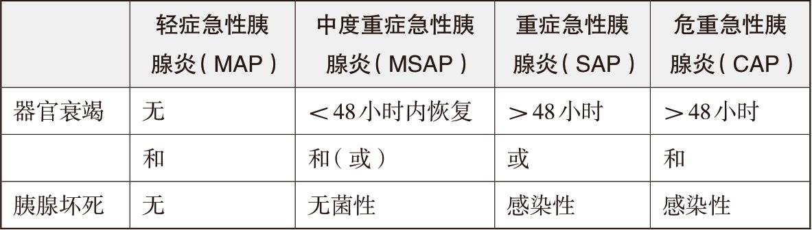 2.确定AP程度 根据器官衰竭(OF)、胰腺坏死及胰腺感染情况分度,见表4-6。