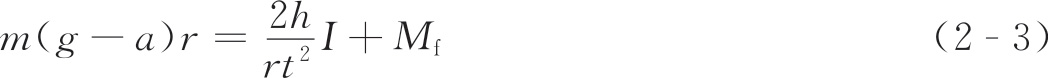 式中: M 为刚体所受的合外力矩(主要由细绳的张力矩 T · r 和轴承的摩擦力矩M f 构成),即 M = T · r - M f ; I 为刚体对该轴的转动惯量; β 为角加速度。