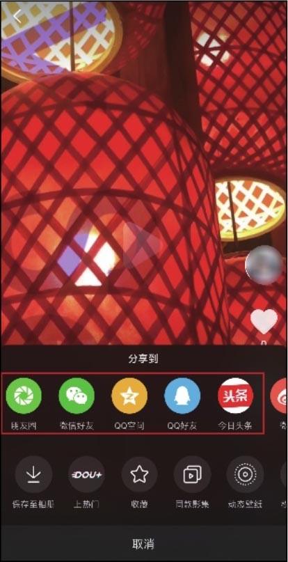 待短视频上传成功后,短视频创作者可在动态中预览上传的短视频,并进入分享界面,将短视频同步分享到其他社交平台上,如朋友圈、QQ空间、今日头条等,如图1-15所示。