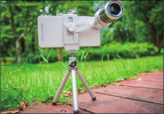 手机外接镜头的作用是在手机原有的摄影功能上提升拍摄效果。目前市面上常见的手机外接镜头有广角镜头、微距镜头和鱼眼镜头,拍摄者在使用时只需将外接镜头安装在镜头夹上,然后夹在手机镜头前方即可,如图2-14所示。