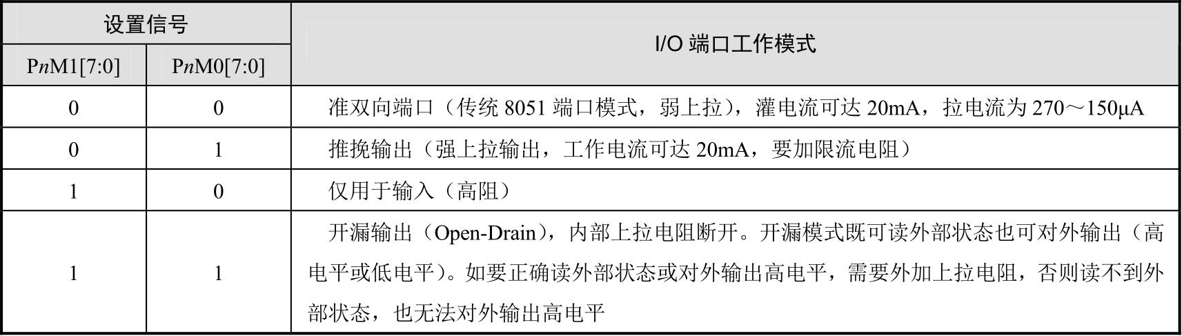 (2)除P3.0和P3.1外,其余所有I/O端口上电后的状态均为高阻输入模式,用户在使用I/O端口前必须先设置I/O端口模式。