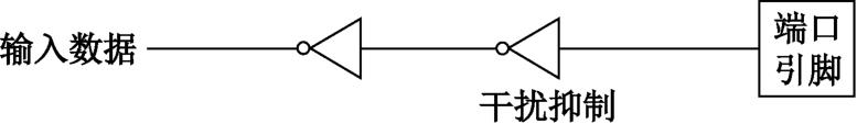开漏输出模式带有一个施密特触发输入电路及一个干扰抑制电路,其结构如图3.14所示。