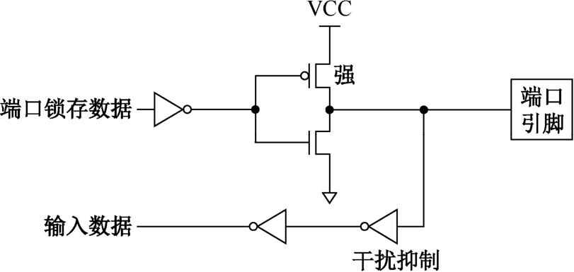 准双向端口(弱上拉)输出的结构如图3.11所示。