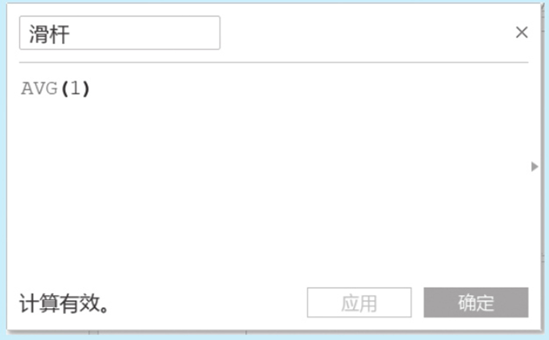 首先创建一个计算字段“滑块”,其计算公式如下(可以是大于0的任意值):