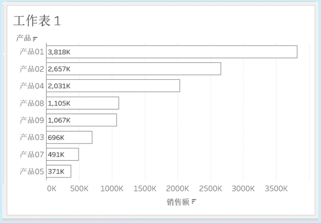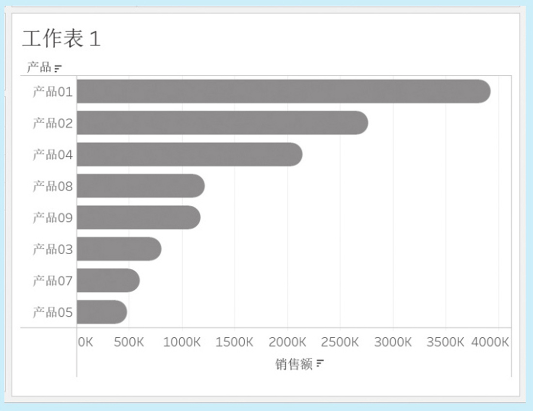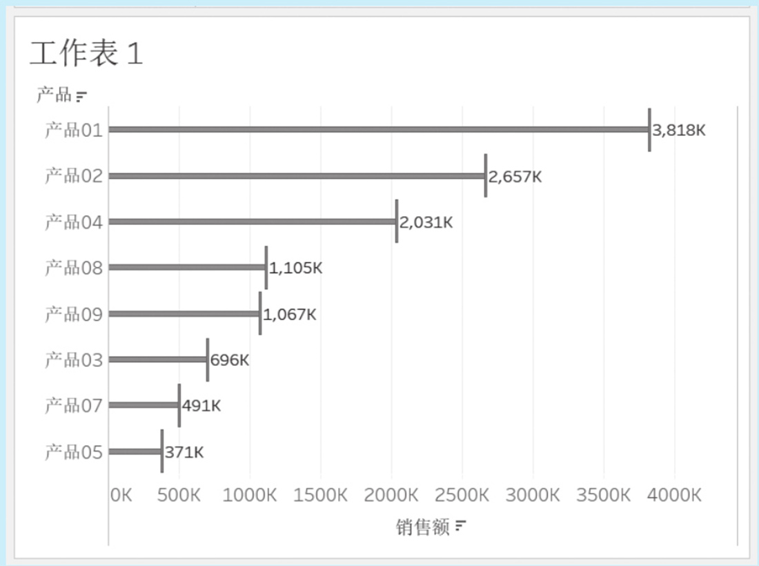 端头条形图的效果如图1-47所示,一根较细的直线,前端有一根垂直线。这个图表的制作方法与圆顶条形图是一样的,只不过是将第二个销售额的标记类型设置为“甘特图”,然后分别设置两个销售额标记的大小。请读者自己练习。
