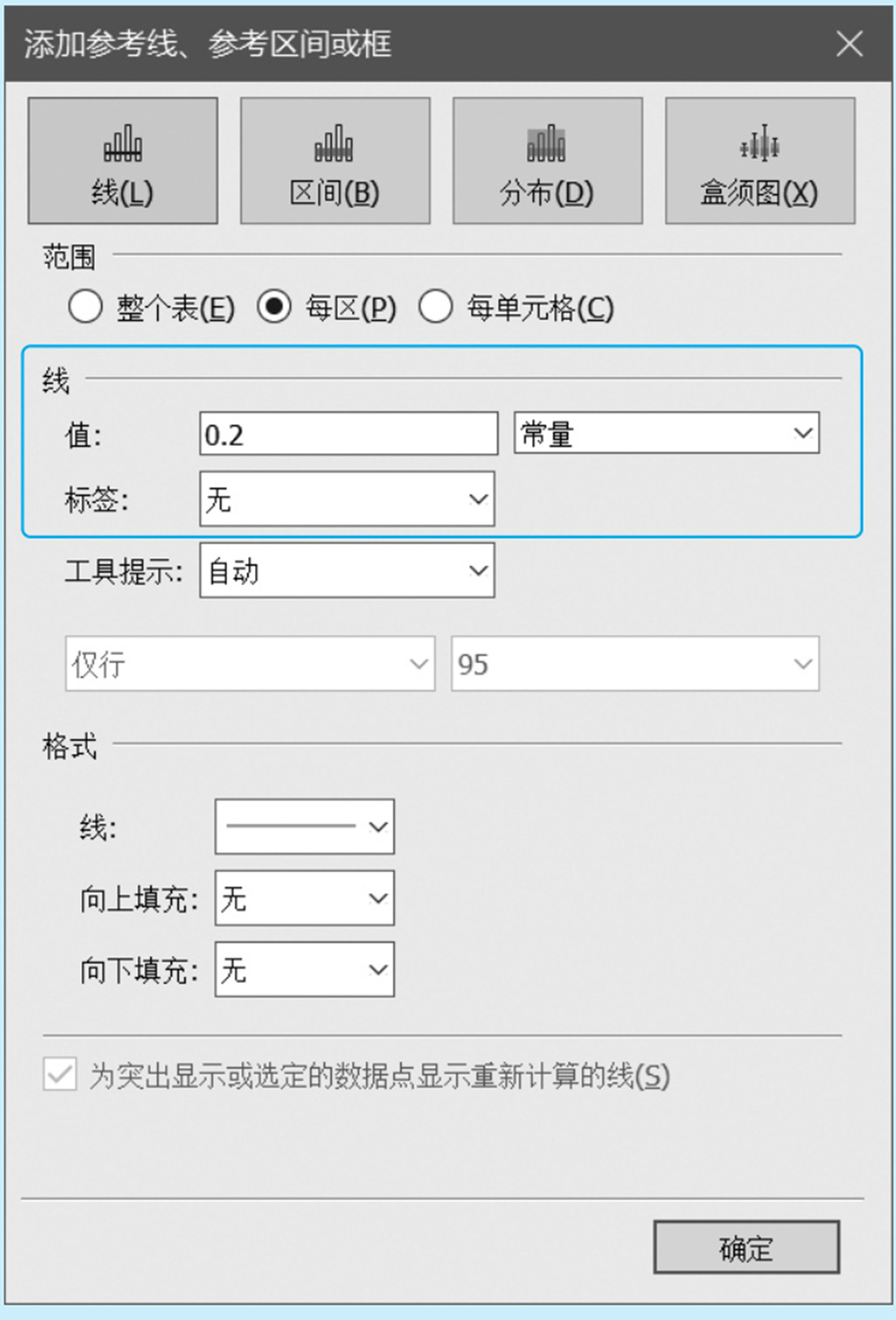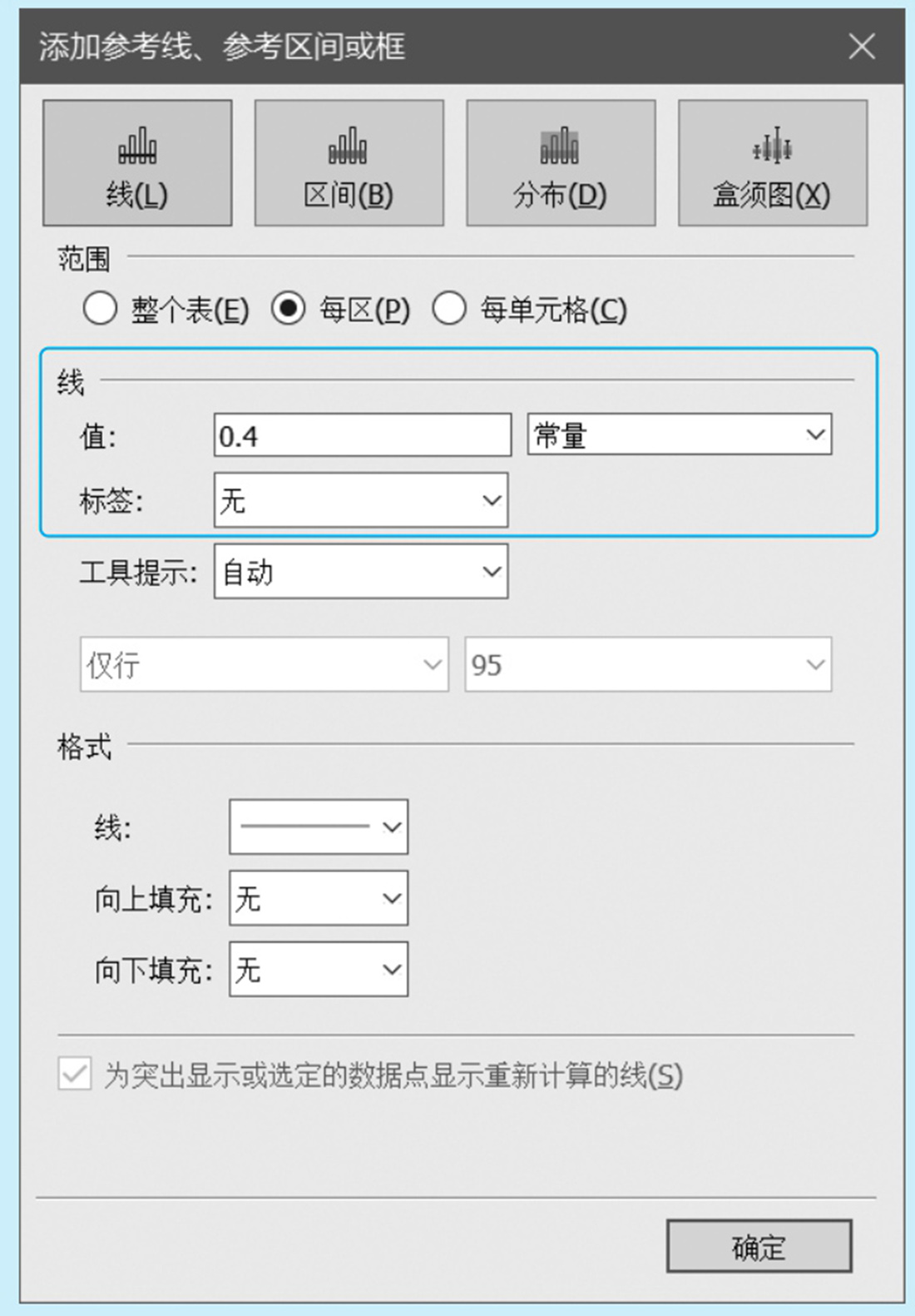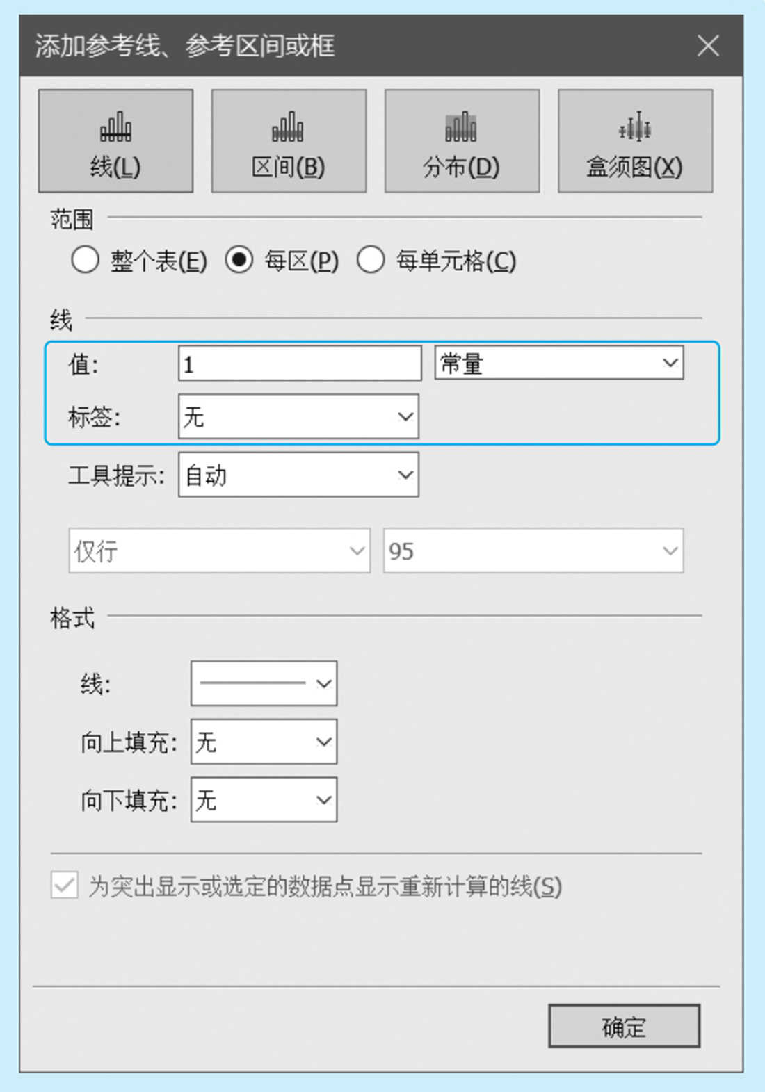 添加一个参考线,其值为“1”,类型为“常量”,不显示参考线标签,如图1-60所示。