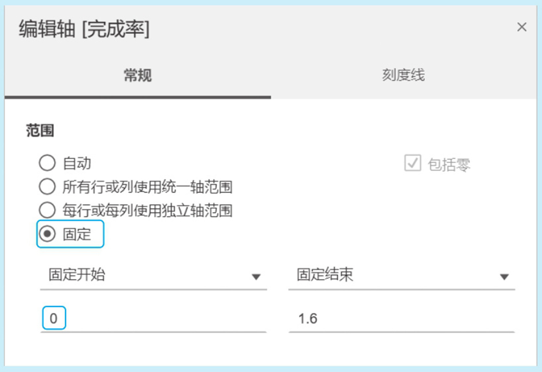 此外,还要将坐标轴范围设置为固定,最小值为0,如图1-67所示。