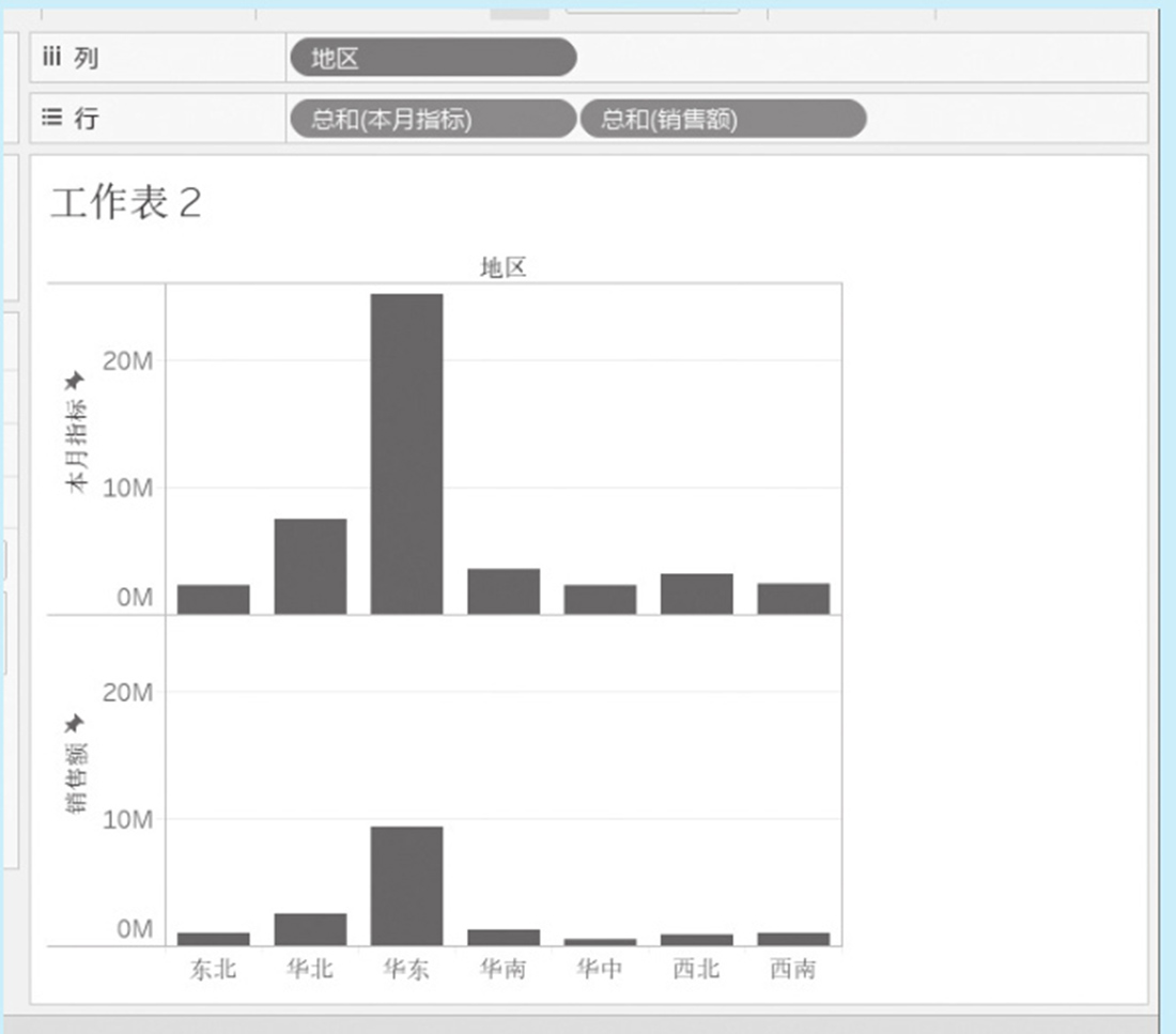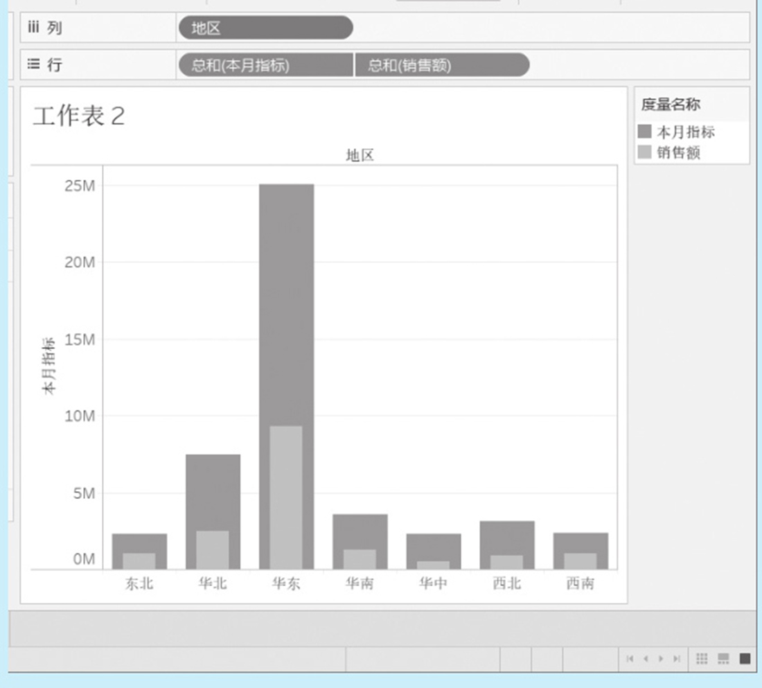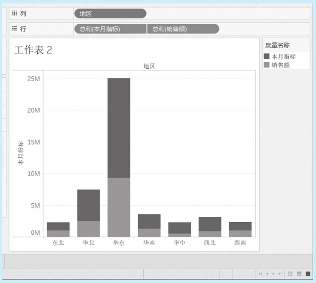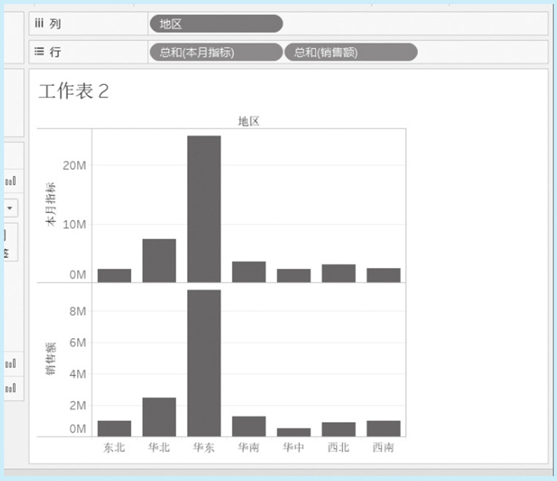但是,如果这几个度量有关联,例如本月指标和销售额、销售额和毛利等,那么需要对图表做适当设置,否则就会影响分析。