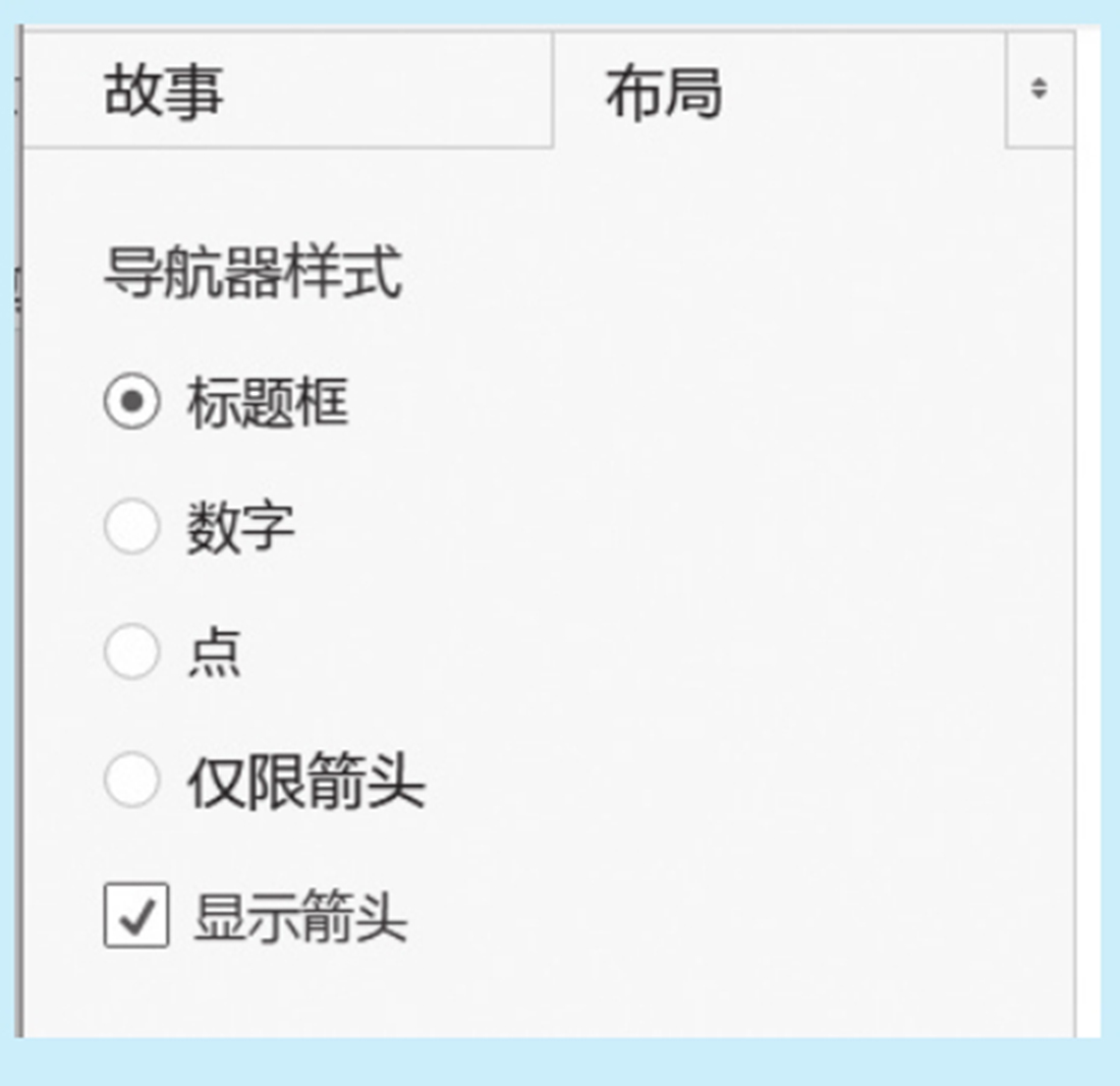“布局”选项卡用于对导航器进行样式设置,包括导航器样式和是否显示箭头,如图2-63所示。