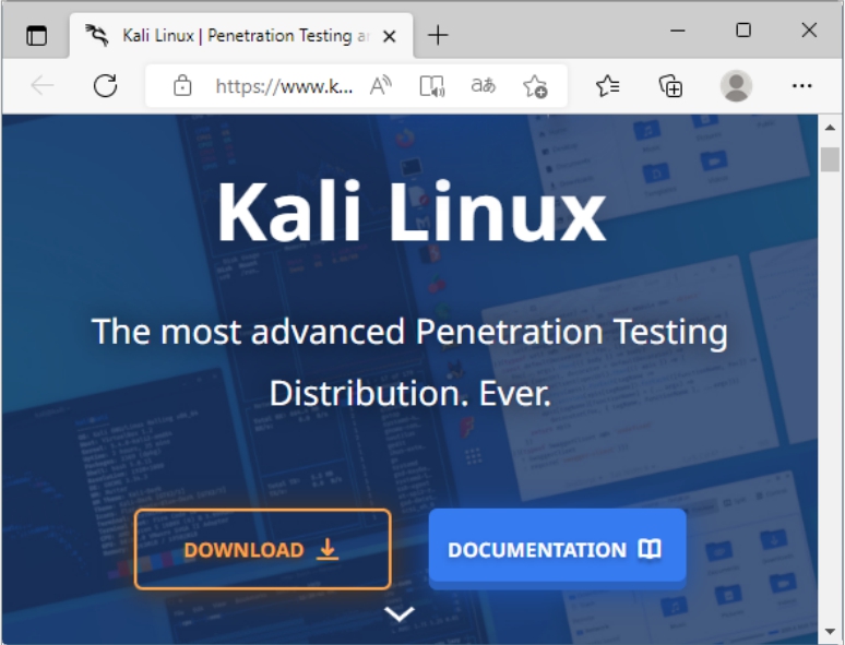 Step01 在浏览器中输入Kali Linux系统的网址https://www.kali.org,打开Kali官方网站,如图2-31所示。