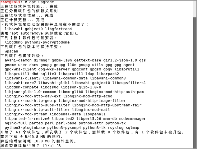 Step03 如果有需要更新的软件,可以运行apt upgrade命令,如图2-50所示。