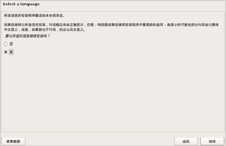 Step07 单击Continue按钮,进入语言确认页面,保持系统默认设置,如图2-40所示。