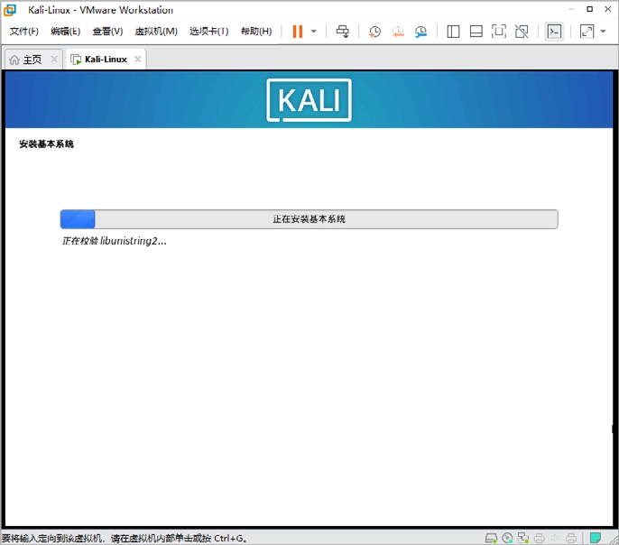 Step10 单击“继续”按钮,按照安装步骤的提示就可以完成Kali Linux的安装了。图2-43所示为安装基本系统界面。
