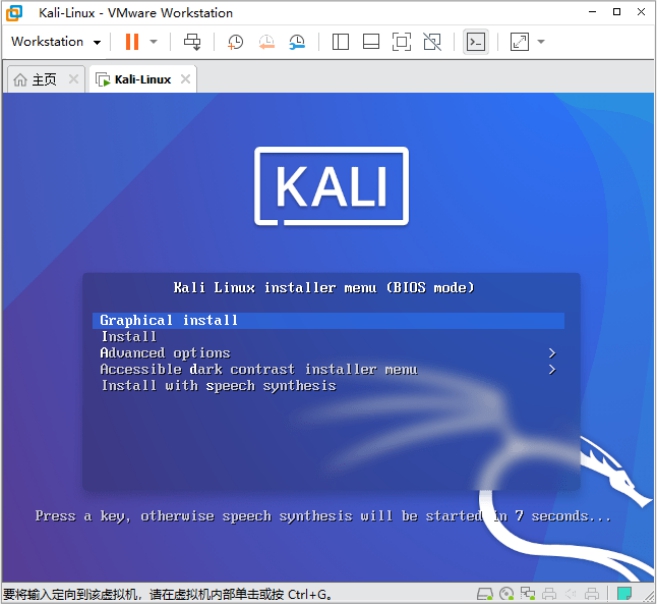 架设好虚拟机并下载好Kali Linux后,接下来便可以安装Kali Linux了。安装Kali Linux的具体操作步骤如下。