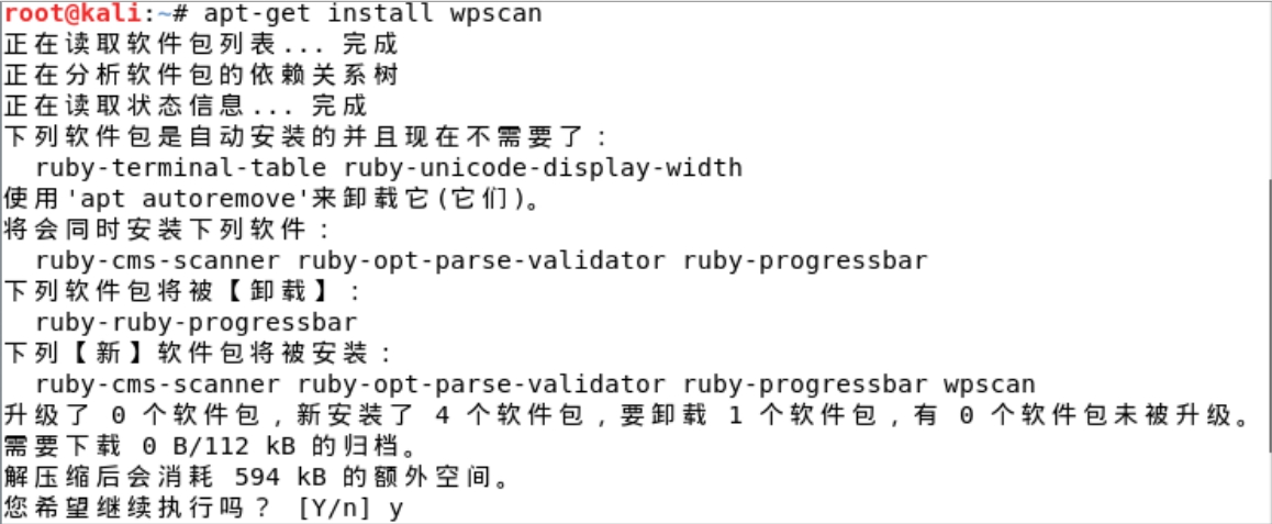 卸载完旧版本后,可以运行“apt-get install <软件名>”命令,如图2-54所示,此时按Y键即可开始安装新版本。