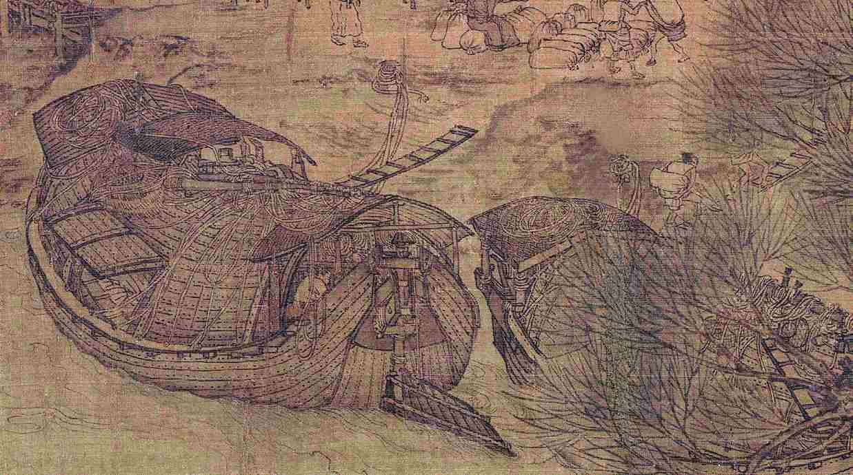 在此之前,画家都是以虚写实,一路画的都是河岸边的场景,我们仿佛能从画面中听到汴河汩汩的水声。然而它就是不露面,吊足人的胃口。