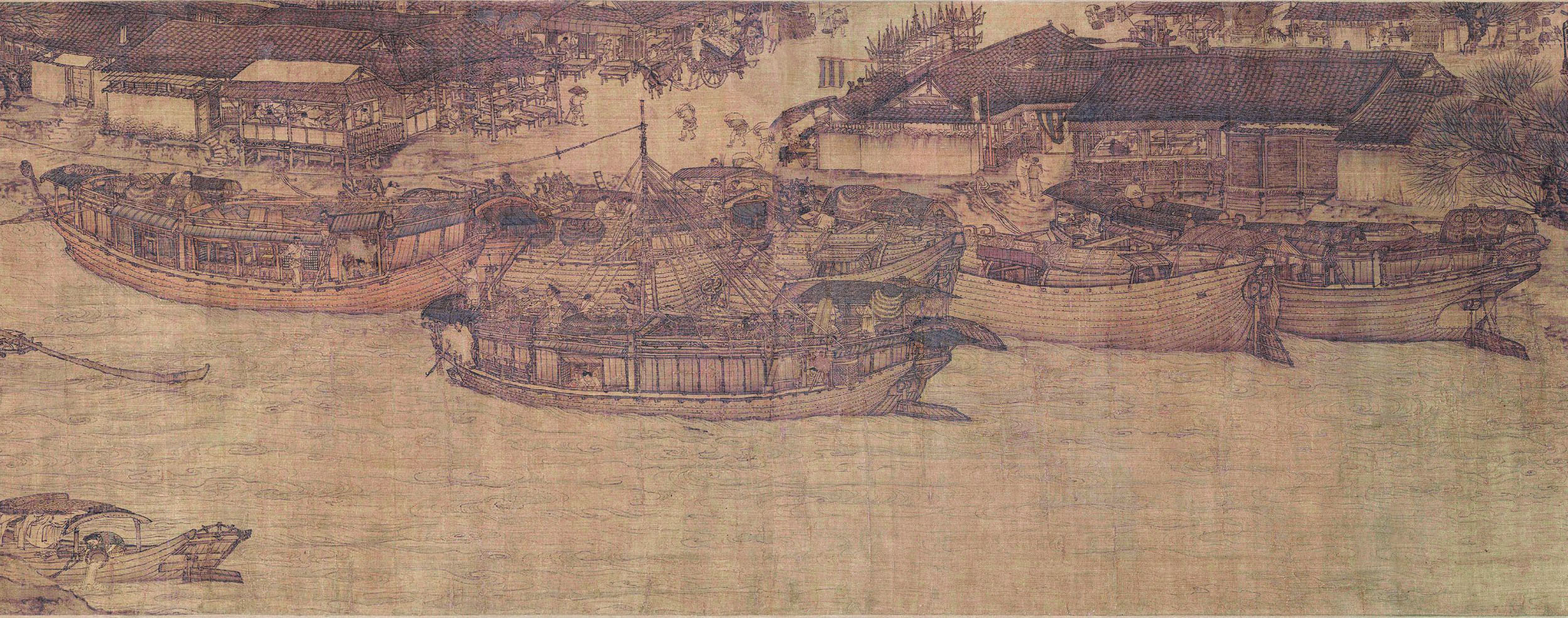 ◎ 河上百舸争流,一派繁荣忙碌的景象